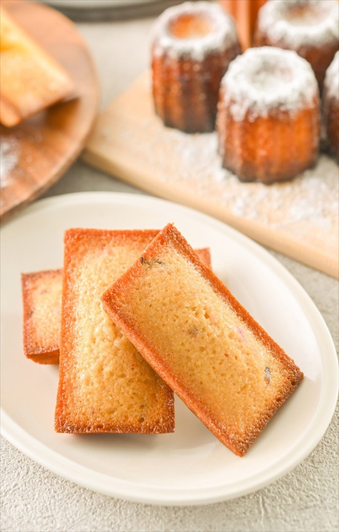 バターはもちろん、焼き方にもこだわり作り上げるButteryの人気No.1。フランス産AOP発酵バターを100%使用した、焦がしバターの香ばしくもミルキーな味わいが印象的な「プレーンフィナンシェ」と、北海道産バターたっぷりの生地が自慢の、風味豊かな余韻が楽しめる「北海道産フィナンシェ」が定番です。