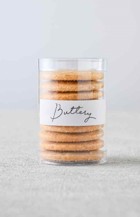 バターの香りとこくが口いっぱいに広がりつつも、さっぱりとしたやさしい甘さを感じるクッキーです。オーブンで一枚ずつ薄く繊細に焼き上げていて、口の中でサクサクとした食感を楽しんでいただけます。見た目に色鮮やかなオリジナルデザインのクッキー缶は、贈りものとしても素敵です。