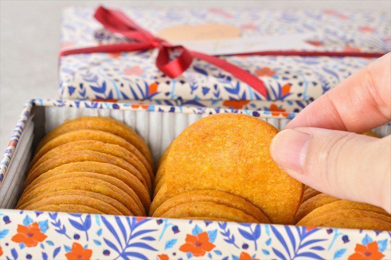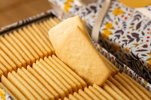 バターの香りとこくが口いっぱいに広がりつつも、さっぱりとしたやさしい甘さを感じるクッキーです。